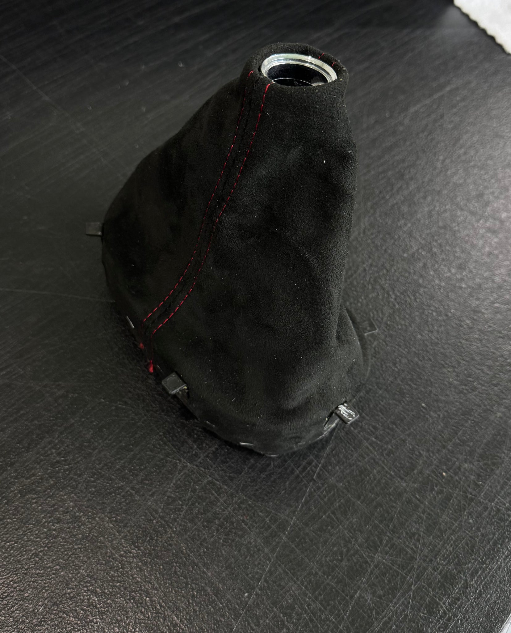 • Suede with Red Stitching - Please note our colored stitching and/or stitching pattern/design may not be an exact match to any existing OEM Setup