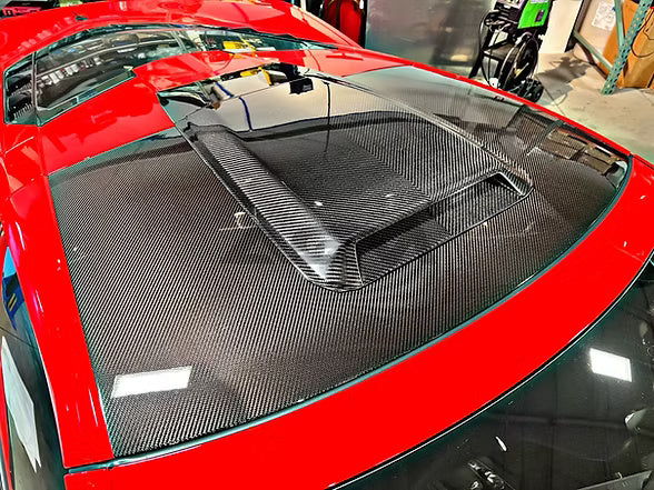 Want to add an aggressive and exotic look to your C8? Look no further! Simply add our Carbon Fiber Roof Scoop Kit. Our scoop installs using 3M tape; no drilling is required. We've been asked if our scoop is functional; it is not. But neither is the roof scoop on a McLaren; it just looks good!