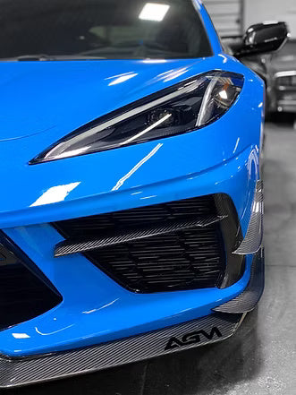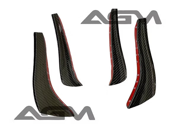 Need to add a little more front-end downforce? Look no further! Simply add our Carbon Fiber Dive Plane (Canard) Kit. At AGM, we manufacture our parts using prepreg carbon, not wet-laid like competitors. We also use the latest in autoclave technology to cure our carbon, giving you the strongest, most appealing finish possible.