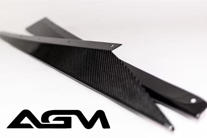 Enhance the overall appearance of your vehicle with AGM Carbon Fiber Rocker Panel Extensions. Precision designed & built by AGM for a perfect OEM fit. Expertly tested to meet solar/UV requirements. *FULL 100% carbon fiber. Not “top layer” carbon like competitors* At AGM, we manufacture our parts using prepreg carbon, not wet-laid like competitors. We also use the latest in autoclave technology to cure our carbon, giving you the strongest, most appealing finish possible. Professional installation is recommended. See the installation manual on our website. * Choose from Visible Carbon Fiber or Painted Carbon Flash Metallic when ordering. NOTE Carbon Flash Metallic The painted option is still made of 100% carbon fiber and then painted.