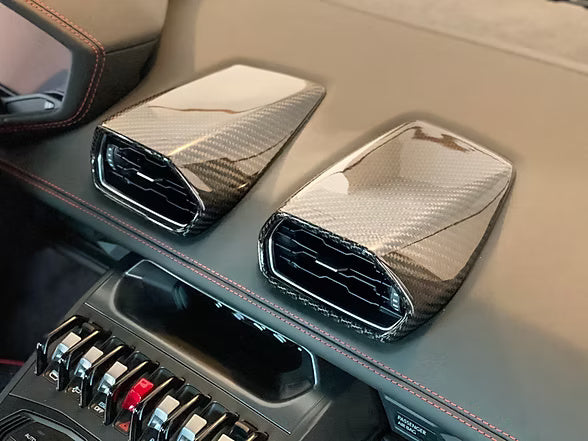 AGM Lamborghini Huracan Carbon Fiber AC Vent Covers (Set of 4). Brand new 100% full prepreg carbon fiber. These parts are a direct cover for the OEM part and need no modification. Installs using 3M tape.