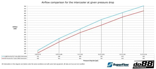 Cooling is important, and so is airflow. After many hours in the development, refining the end tanks and choosing a core to meet our demand, the result is an intercooler that is much more efficient in terms of heat transfer as well as airflow. Using our in-house flowbench, Superflow SF-1020 Probench, the airflow is verified for both the do88 intercoolers and the OE 992 units. What you see is what you get – true performance!