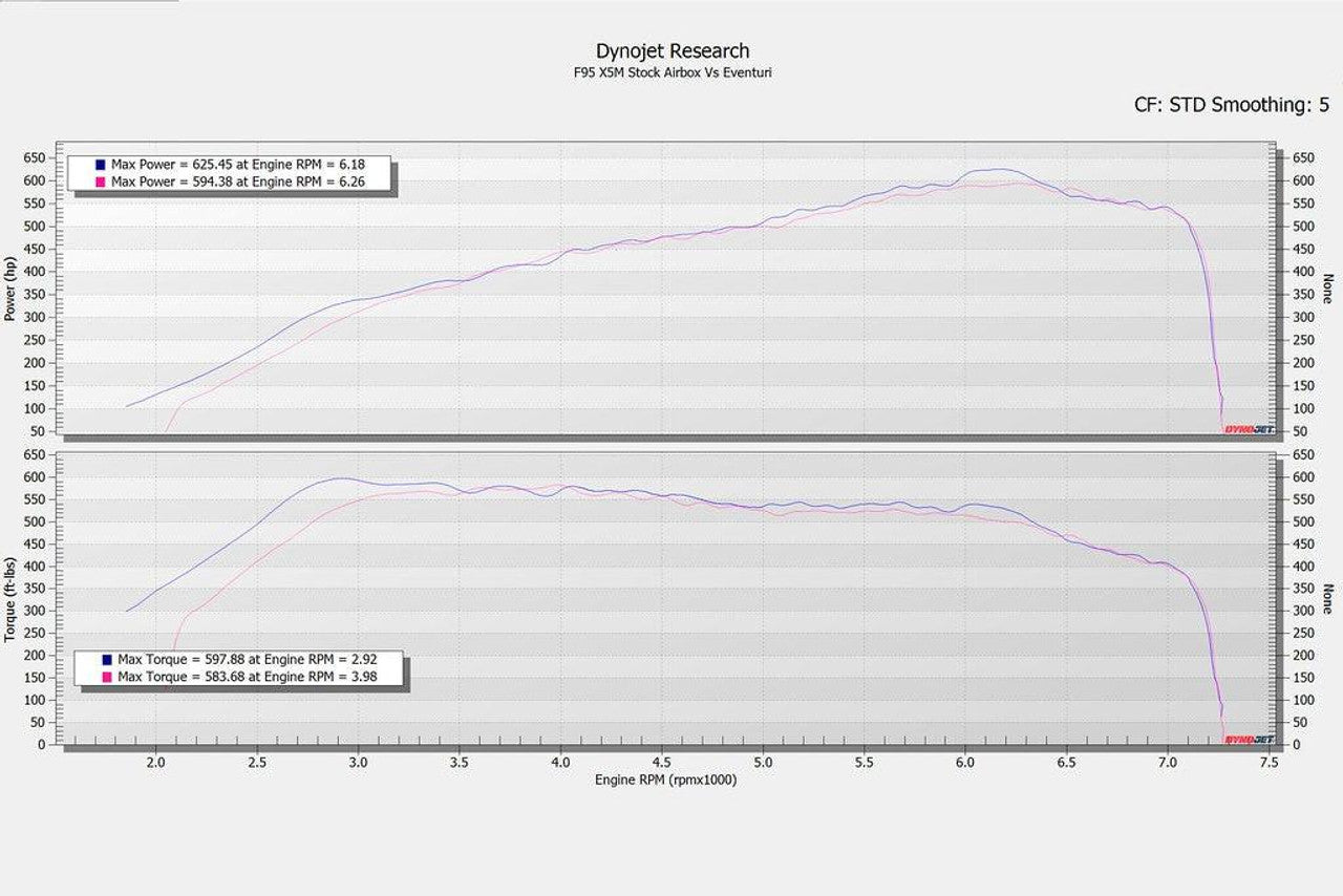 The F9X X5M, G09 XM Eventuri system uses our Patented Carbon Fiber Housings with our Gen 2 bespoke filters, which provide an aerodynamically efficient airflow path from the filter to the turbos. Not just another cone filter with a heat shield but a unique design which invokes the Venturi effect and maintains laminar flow conditions to reduce the drag on the turbo. You can read more about the housing design and how it works HERE.