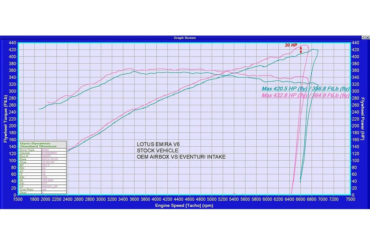 The Lotus Emira Eventuri system uses our patented carbon fiber housings with our Gen 2 bespoke filters, which provide an aerodynamically efficient airflow path from the filter to the turbos. Not just another cone filter with a heat shield but a unique design that invokes the Venturi effect and maintains laminar flow conditions to reduce the drag on the turbo. You can read more about the housing design and how it works HERE.