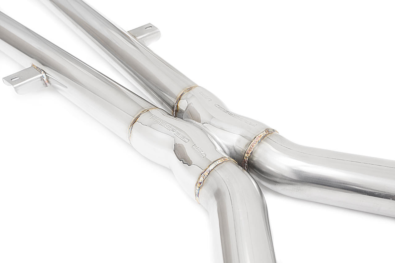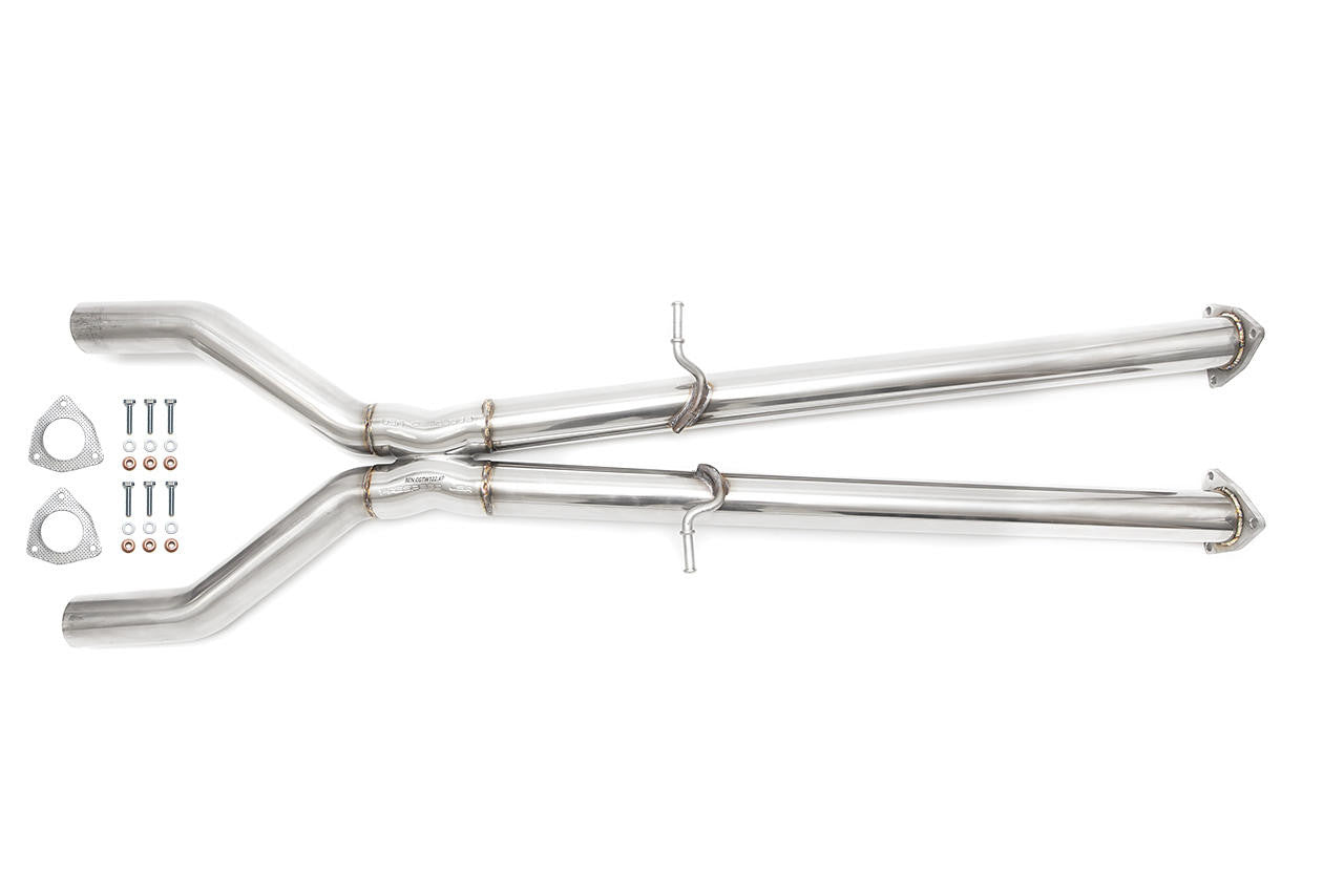 Optimizes exhaust flow and improves sound by replacing the resonators and secondary catalytic converters with a straight through X-Pipe design. Available for all generations of V8 & W12 model. Please accurately specify year/model before checking out.