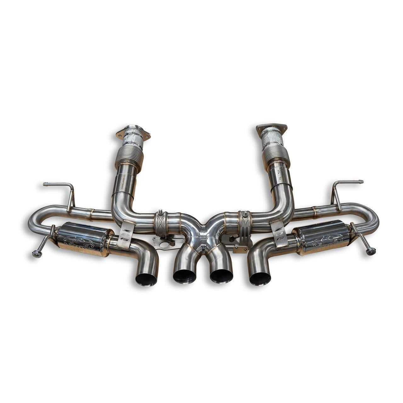This incredibly versatile exhaust is able to go from tame cruiser, to thoroughbred race car with the press of a button. With the car set to the loud exhaust mode (valves open), you’ll be treated to a much more authoritative rumble at idle, and our signature X-pipe bringing out the a high pitched wail that, dare we say, exceeds that of the Ferrari 458. With the Stingray or E-Ray set to quite mode (valves closed), it’s totally drone free and you can easily have a conversation in the cabin just like the OEM exhaust.