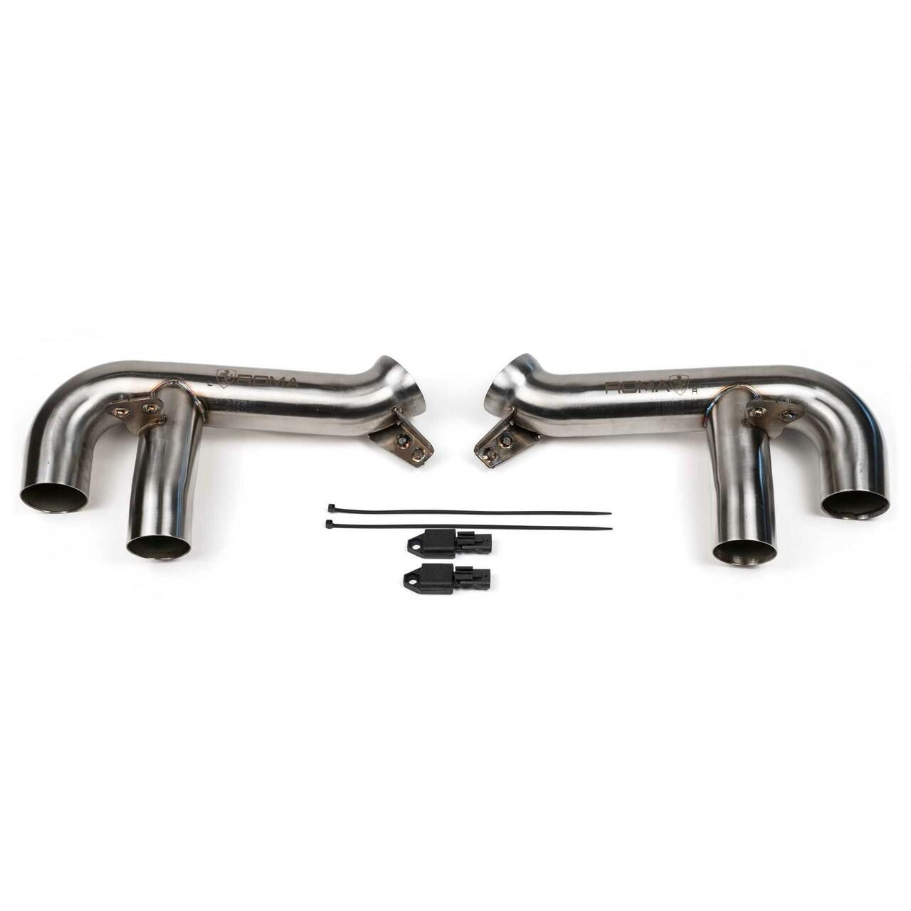 The easiest way to get more sound out of your Roma! Replace the factory exhaust valves with these valve delete pipes for more exhaust flow and sound. The Roma’s exhaust has no mufflers or resonators in it at all, ferrari uses two valves to control the loudness and tone of the exhaust. The problem is these valves are closed a lot of the time so you don’t get much sound, our Supersport Valve Delete Pipes fixes that issue, giving you all the sound of the Ferrari twin turbo V8 all of the time. Replace the factory midpipe with a hand fabricated X-Pipe for a more exotic Ferrari V8 sound.
