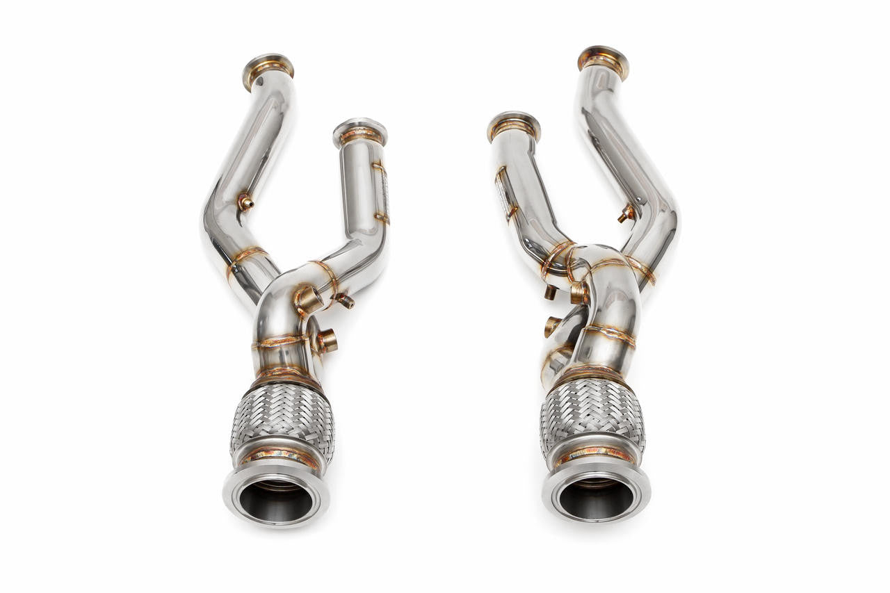 Straight-through catless pipes, direct bolt-on replacement for the bulky & restrictive factory catalytic converters, provide maximum flow and power for the ultimate in power and sound.