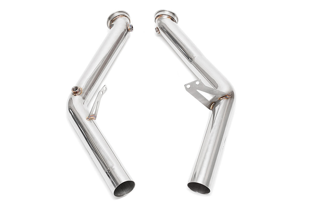 Maximum performance Catless downpipes replace the restrictive primary factory catalysts with straight-through mandrel-bent tubing sections for maximum performance and exhaust sound.