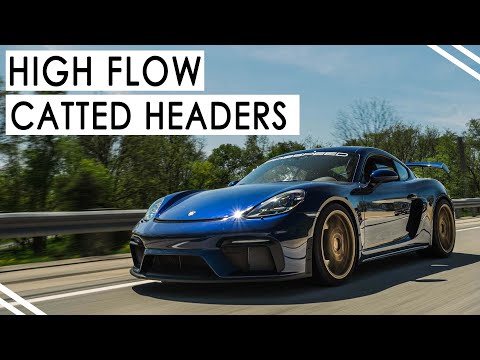 Many have complained about the lack of sound with the new 718 4.0 Liter cars, these high flowing headers completely solve that issue. Equipped with our 200 cell cats, you will get a louder exhaust note with a much more raw sound. Higher frequency tones are more defined, and deceleration burbles are more robust and transparent. With the cat bypass pipes installed, you're in store for a sound much more akin to a 911 CUP car than a Porsche street car. The volume isn't overbearing, but the sound is very aggressive and race bred. It totally changes the character of the car. With the stock muffler in place, there is no drone what-so-ever, even with our Over Axle GPF Delete Pipes also installed.