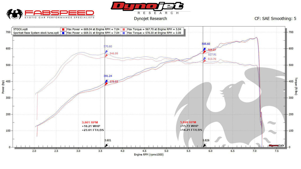 - Competition Sport Cat Race Pipes combined with our proprietary ECU Tune makes over 740HP to the wheels. 850HP to 888HP to the crankshaft on pump gasoline.