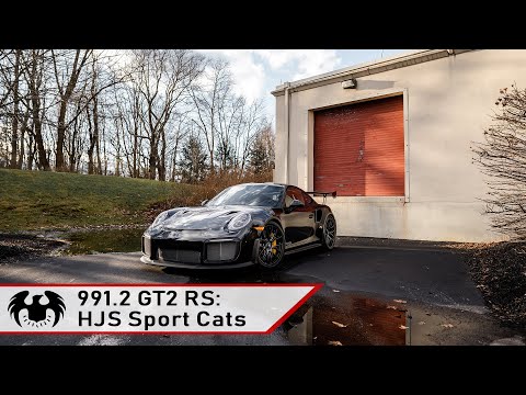 Replace the restrictive OEM ceramic GT2RS 700 cell catalytic converters with ultra free flow HJS German Imported tri-metallic race quality 200 cell HD cores that flow 92% to 93% of a straight pipe. Fabspeed Motorsport USA is the Exclusive Importer for HJS Emissions technology Deutschland Germany for all of North and South America. We use the very best largest imported 200-cell HJS Sport Cats that immediately reduce backpressure and significantly increase exhaust flow for better power and throttle response and improved superlative GT2RS dynamic sports car sound!
