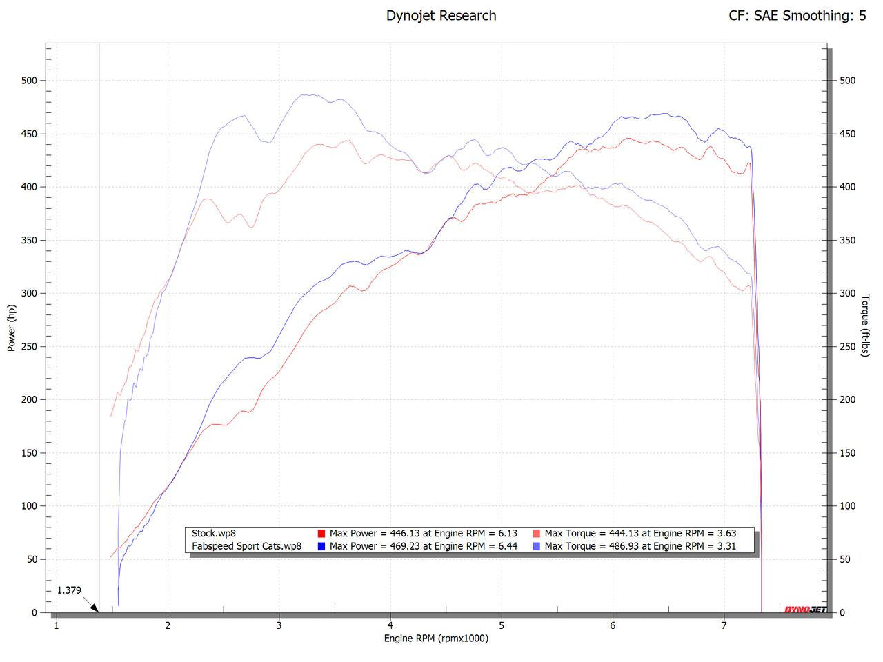 HJS German EMITEC 200CPSI catalytic converters can flow up to 90-93% of a straight pipe in most applications. The benefit is that you get the "straight pipe exotic sound" while still being able to provide enough emissions scrubbing to prevent a check engine light. DO NOT ASSUME ALL CATALYTIC CONVERTERS ARE THE SAME or EVIL PErformance killers. HJS EMITEC catalytic converters are 100% Guaranteed to make more power than any Illegal cat-bypass pipes even on Turbocharged engines with aftermarket high performance turbos. If you'd like to learn more, watch our video about HJS German catalytic converters.