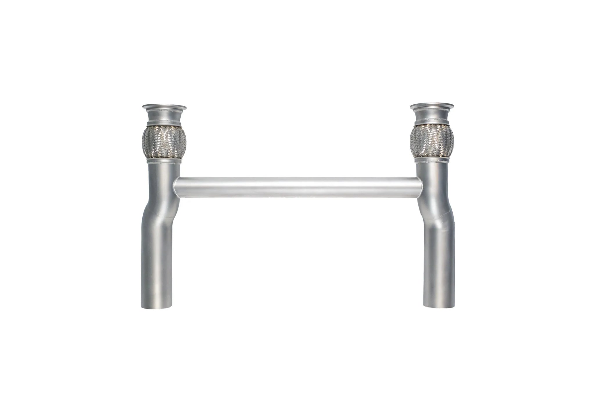 CONSTRUCTION:  Each system is made from mandrel bent .039″ wall steel tubing, CNC machined flanges, and laser cut brackets. All welds are back purged for full penetration and maximum strength.