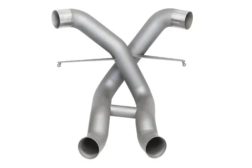 DEVELOPMENT: We wanted to create a solution to unlock extra exhaust flow from the 570 / 540 platform while improving sound quality in as simple a design as possible. For this twin turbo application we incorporated an H pipe / talk tube which helps to smooth out the exhaust note for a more refined sounding exhaust. Cross over piping design cuts down on rasp and resonance, especially on catless cars.