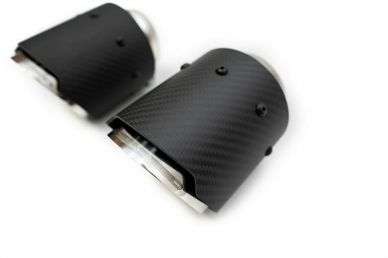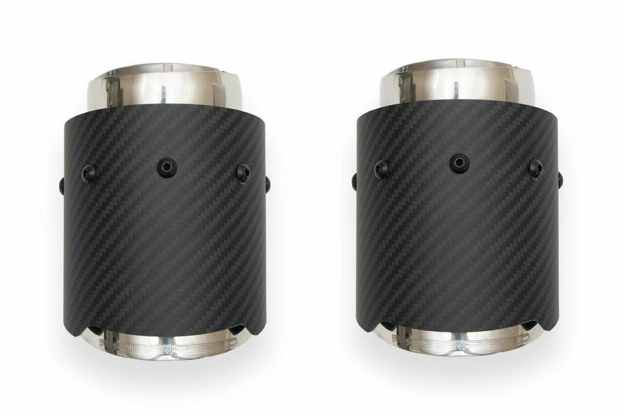 - Choose between real matte Carbon Fiber tips or Single Wall Stainless Tips that are made in house for a racecar look
