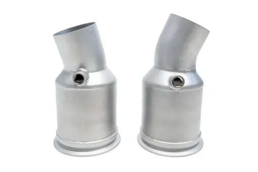 Replaces the restrictive factory downpipes and valved exhaust with large diameter 3.5″ tubing and free-flowing catalytic converters allow for a substantial increase in turbo sound, throaty engine note, and power for your GT2 RS — all without check engine lights or noxious fumes.