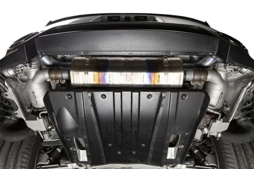 DEVELOPMENT: Unleash an incredible exhaust note and intimidating turbo spool befitting of a 700 horsepower masterpiece by upgrading from 700 cell to 200 cell catalytic converters and optimizing exhaust flow through CAD designed and hand finished downpipes. Incorporating high-flow catalytic converters – designed to withstand extreme abuse – let you hear your turbos clear as day with no check engine lights or noxious fumes. Larger valves than factory (76mm OD vs 67mm OD) and a larger outlet pipe allow for an increase in exhaust flow. Priority flow is increased to the tip outlet, increasing power and sound when the valves are open.