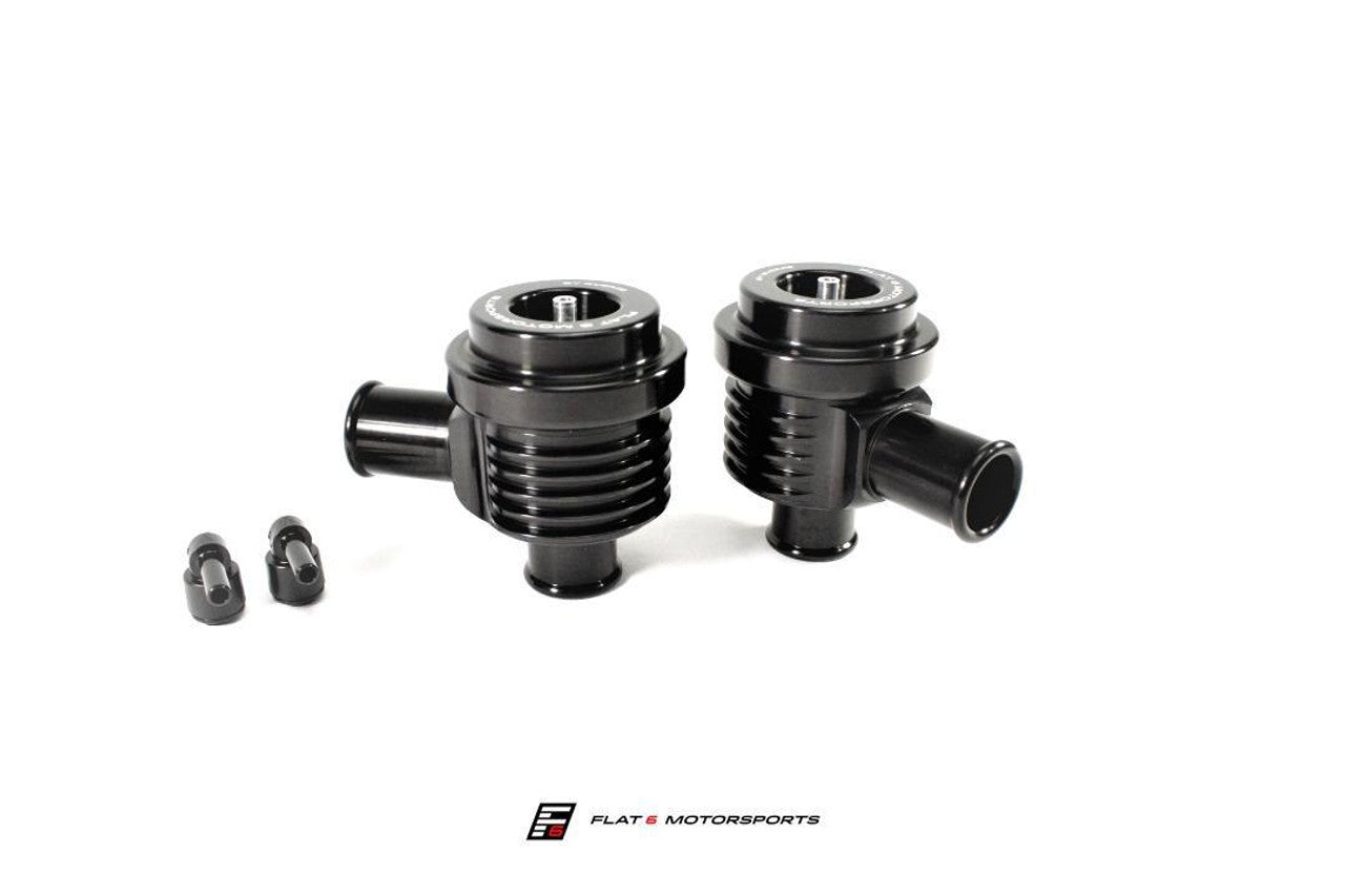 The Flat 6 Motorsports by EVOMS Performance Diverter Valves replace the cheap OEM plastic diverter valves that are prone to leaking boost with tuned and even stock 911s. Flat 6 Motorsports has partnered with Evolution Motorsports (EVOMS), a renowned Porsche tuning company to offer a high-quality diverter valve solution. We leveraged their expertise in tuning high powered Porsche vehicles for decades. Paired with precision manufacturing, these EVOMS diverter valves are built to last.