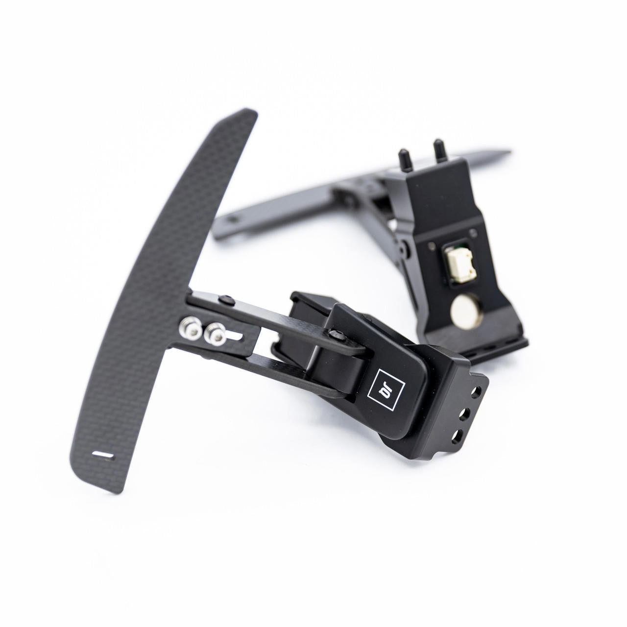 The JQ Werks Madtrace® Clubsport Magnetic Paddle Shifter System is manufactured from CNC machined 6061-T Grade Hard Anodized Billet Aluminum cage, Neodymium Magnet, and high-strength integrated 4mm-thick Carbon Fiber plates. JQ Werks Madtrace® Clubsport Magnetic Paddle Shifters will bring you a significantly aggressive driving experience with our engineering design. This system has been designed explicitly with the Porsche Sport Design Steering Wheel, providing outstanding fitment and true plug & play installations. The shifters are track oriented. It is built to make it clear and satisfying to select gears no matter the steering angle. Due to its natural characteristics, the shifter will have a more robust and speedier snap back into positions. In addition, it makes a clean "click" noise every time you shift, making the ride more joyful.